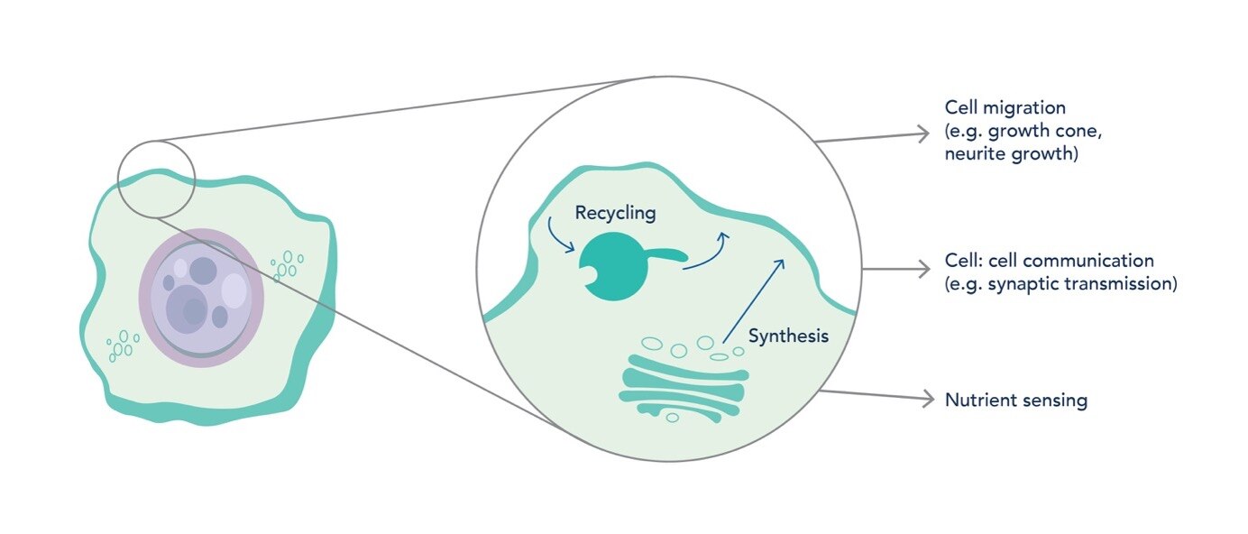 Maintenance of the plasma membrane proteome is essential for cellular functions, including nutrient sensing and transport, cell-to-cell communication, and migration. Correct spatiotemporal control of integral membrane proteins at the cell surface is reliant on two core pathways: the biosynthetic pathway and the endolysosomal network (Figure 1). The cell integrates these pathways to regulate proteins present at the cell surface, which allows it to adapt to changing physiological demand2. Perturbations to these pathways can have detrimental effects, with links to neuronal defects3,4.